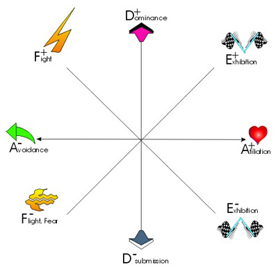 Picture) has a horizontal (afiliation-avoidance) and a vertical (dominance-submission)